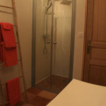 Lit en 160cm x 200cm. Grande salle de bain privée avec fenêtre, mobilier en teck, Tarif : 68 euros (taxe de séjour et petits déjeuners compris)